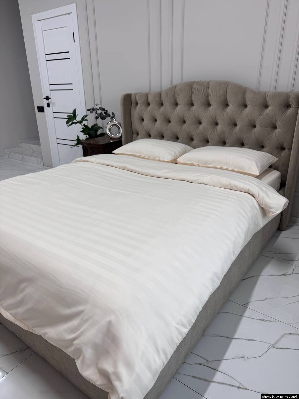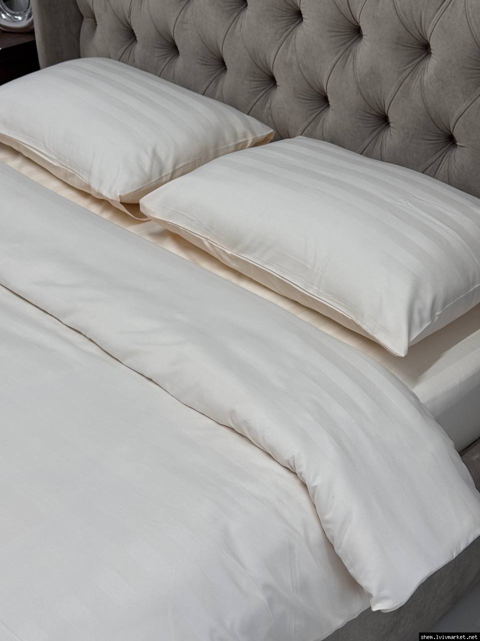 Тканина із Страйп-Сатину надає гладкість та шовковистість зовнішньої сторони, чим забезпечує приємне відчуття. Ніжна на дотик фактура, яка не ковзає та має легкий відблиск.