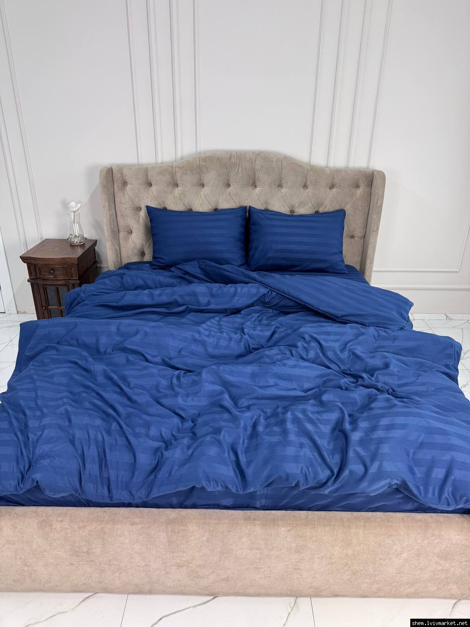 Тканина із Страйп-Сатину надає гладкість та шовковистість зовнішньої сторони, чим забезпечує приємне відчуття. Ніжна на дотик фактура, яка не ковзає та має легкий відблиск.